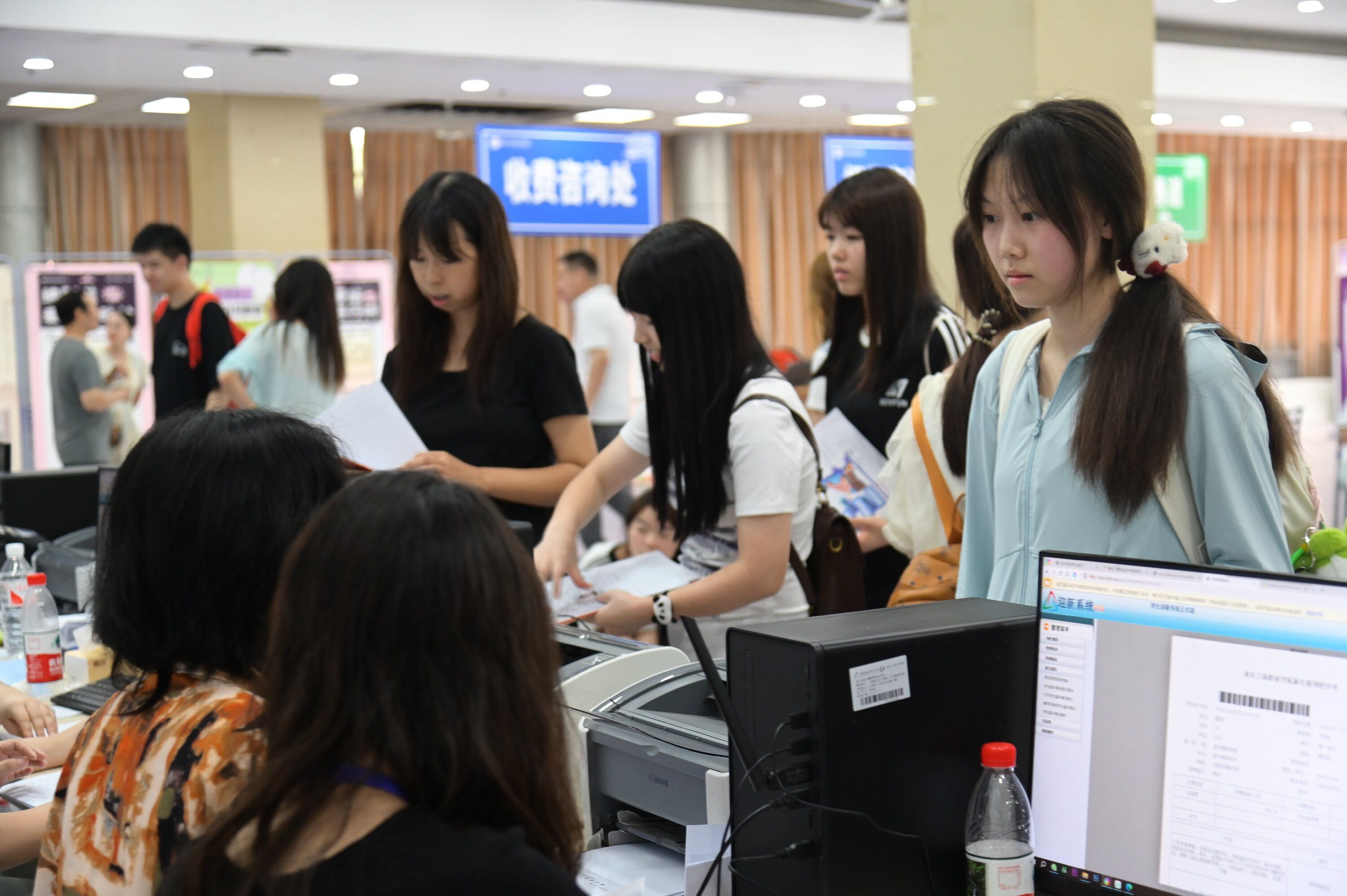 新生们在志愿者的引导下,有序办理登记报到。学校领导亲临迎新现场,详细了解报到情况,慰问新生与工作人员。