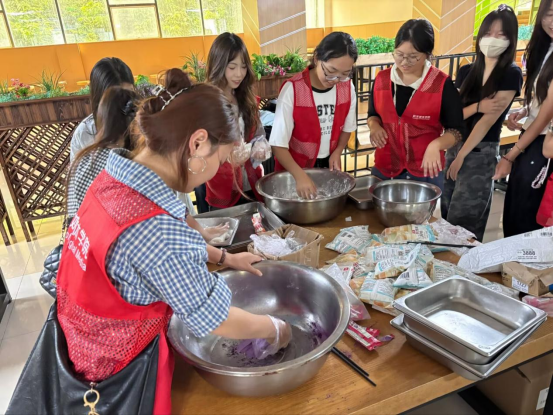 【供稿:张双双丁嘉阳】9月28日,数字媒体学院团总支学生会社区文化部在食堂二楼组织开展了“月满冰皮韵,情寄中秋时”冰皮月饼制作活动,大一、大二学生及泰国留学生积极参与。