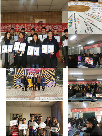 获奖与实训:从2013年开始,数字媒体艺术专业在毕业设计展的比拼中积累了十八个金奖,二十二个银奖,铜奖若干,受到称赞。专业学生也可以选择升本进修,以下是2015届的金奖获得者李美美同学和汤蕊侨同学考上了工商学院本科专业,继续自己的学习。
