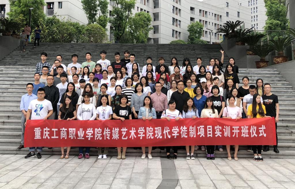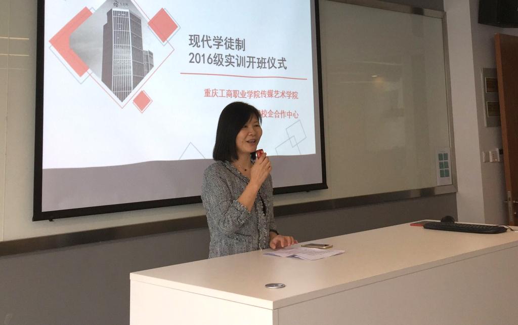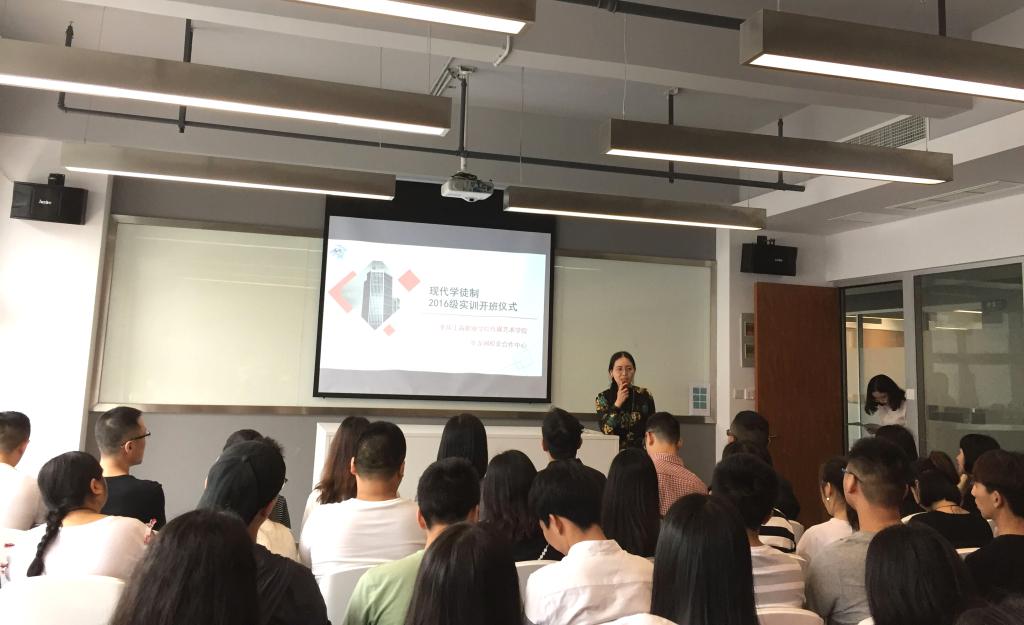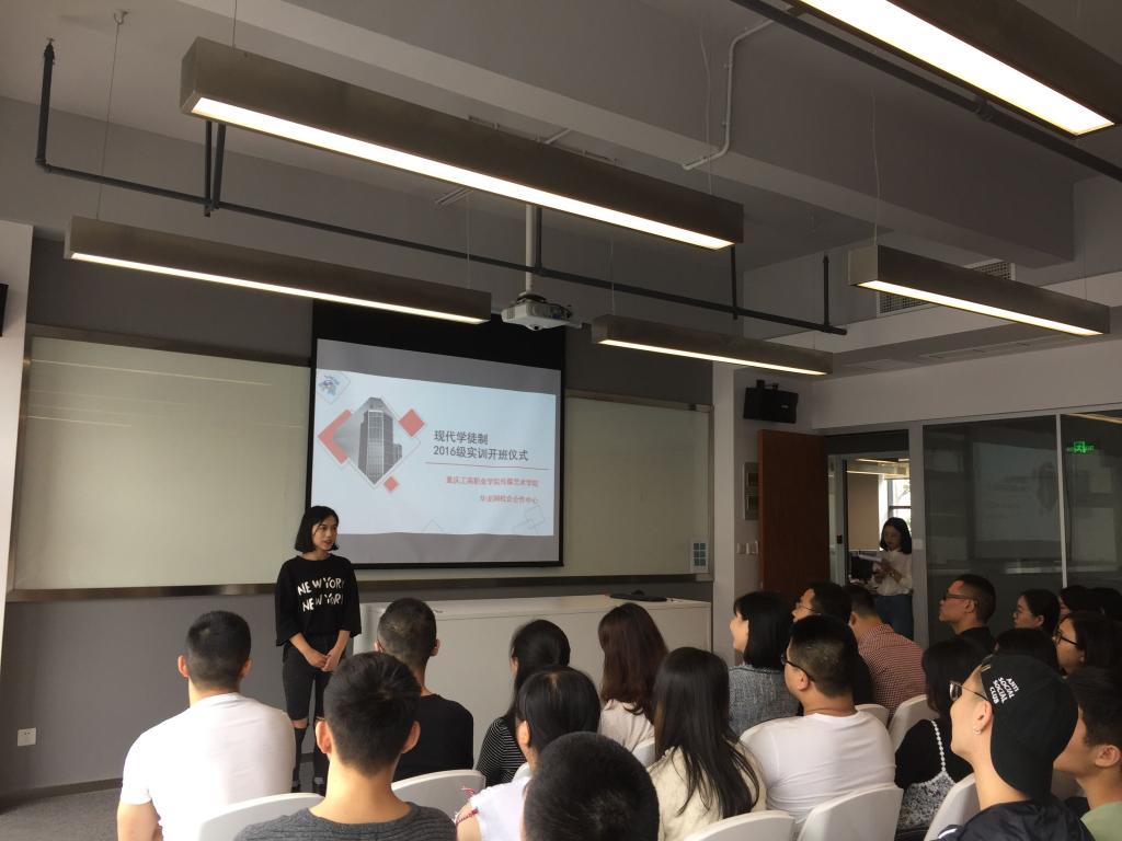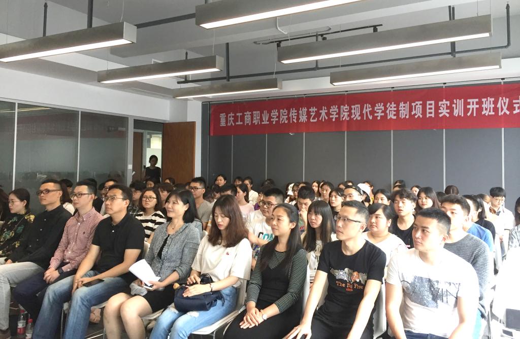 【供稿:陈倬豪】5月2日上午,传媒艺术学院与华龙网在两江新区重庆互联网学院联合举行“现代学徒制项目实训班”开班仪式。院党总支副书记杨诗、华龙网李晓红教授、学徒制项目全体专业教师、企业实训教师以及广播影视节目制作、数字媒体艺术设计现代学徒制专业16级全体学生参加了开班仪式。