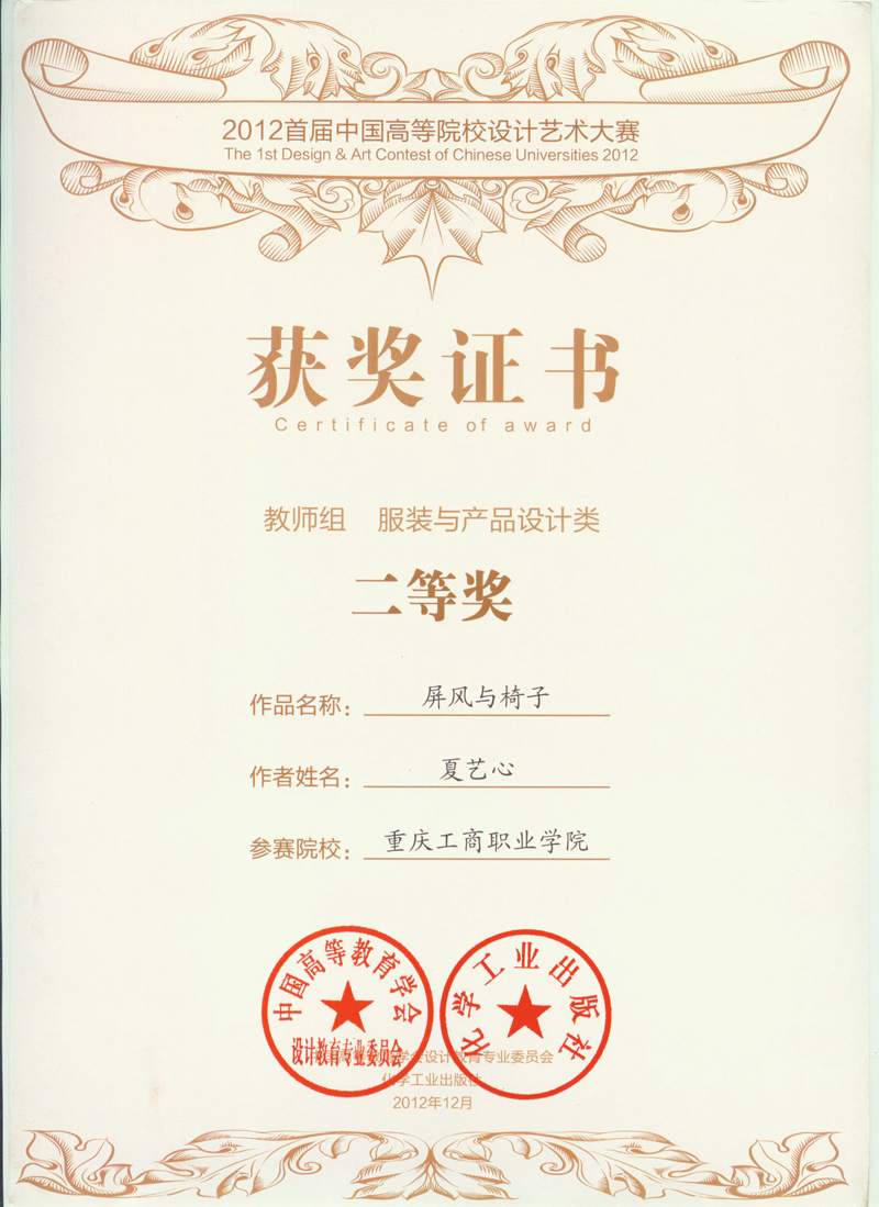 夏艺心,女,重庆人。重庆工商职业学院产品艺术设计专业10级(13年毕业)的学生。
