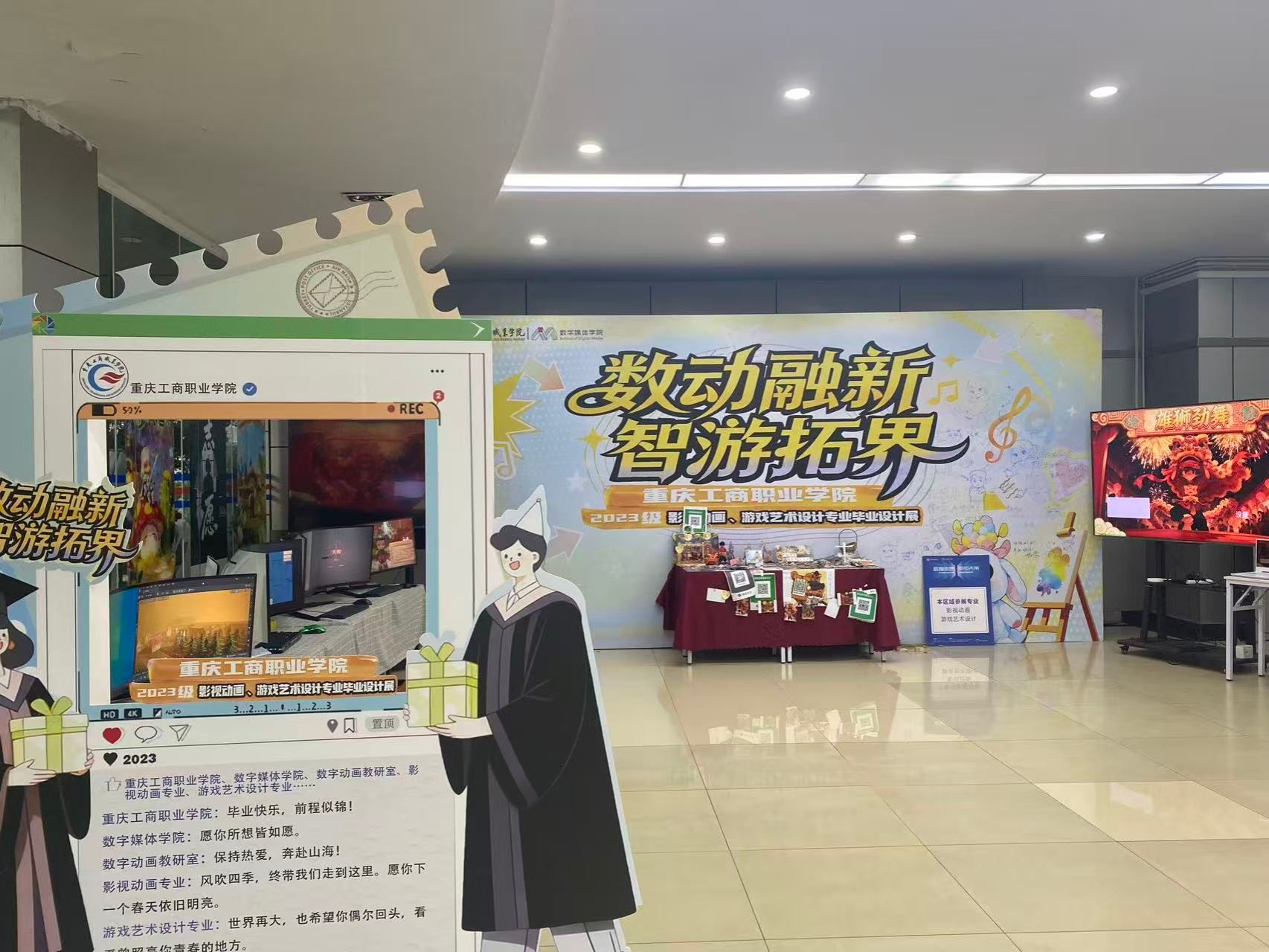 2025年11月26日,重庆工商职业学院数字媒体学院2023级影视动画与游戏艺术设计专业毕业展在实训楼启幕。展厅内光影流转,人潮涌动,一场凝聚着青年创意与数字美学的视觉盛宴正式拉开帷幕。