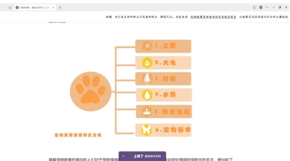 生离死别犹如一朵沾染着夜露的玫瑰,也许常伴着酸楚刺痛的眼泪,但并非只有一种模样,换个角度,我们能发现生命的新契机。对于养宠人士来说必须面临的一大现实问题是毛孩子的身后事处理,“宠物殡葬”在这个问题导向下应运而生,宠物殡葬是指为逝去宠物提供遗体处理服务,其中最受丧宠人士欢迎的是:遗体告别。由于宠物主对宠物的怀念与珍视,两者间情感深厚,宠物殡葬以尊重生命为行业初心,亦能成为治愈丧宠主人悲痛的创可贴,在现代化发展进程中,我们弘扬人文主义情怀,希望共筑充满爱和美好的世界。