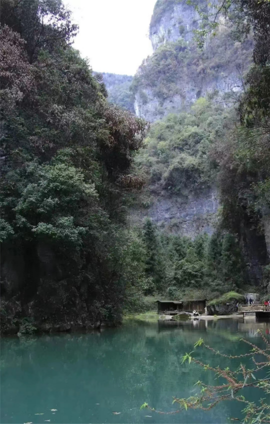 天坑下的山水交融而成的景色让人震撼,山清水秀。峰峦叠嶂,碧水如镜,青山浮水,倒影翩翩。