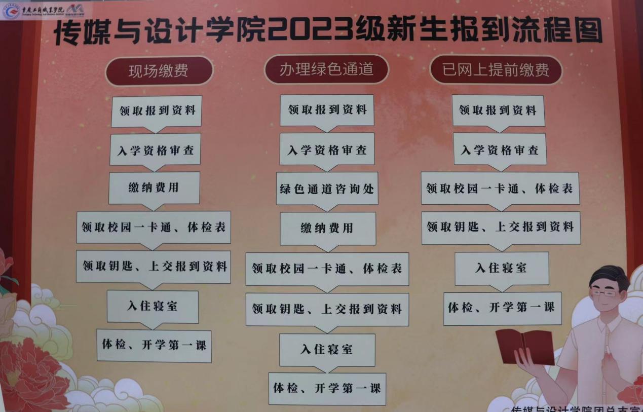 来到图书馆报道点,图书馆门口的报道流程展板将每一项流程崭新的十分清晰。同时在进入图书馆内,每个流程都站着专属的志愿者工作者,确保每位新生同学切实落实完成每一项,避免造成报道流程的缺失,展现出志愿工作者的细致严谨。
