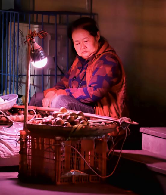 我也有些感同身受。卖不出去水果但也要继续去卖,拍不出好的照片也要继续去拍,感觉很累但也要继续坚持。我拿起相机抓拍到了这一幕,拍到了她不同时段的状态,从微眯到头低垂再到沉睡,完整呈现出那时她的整个状态。也让我明白生活的不易,但可以小憩一下再重新整装出发。