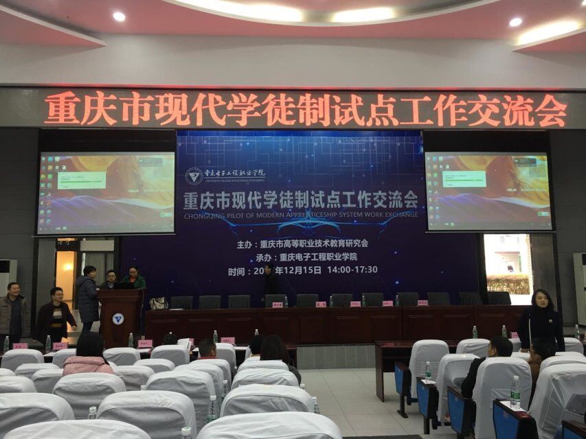 12月14日,重庆现代学徒制试点交流会议在重庆电子工程学院举行,来自重庆各高校的现代学徒制试点专业负责人和老师们齐聚一堂,汇报进度,沟通问题,探讨未来发展。