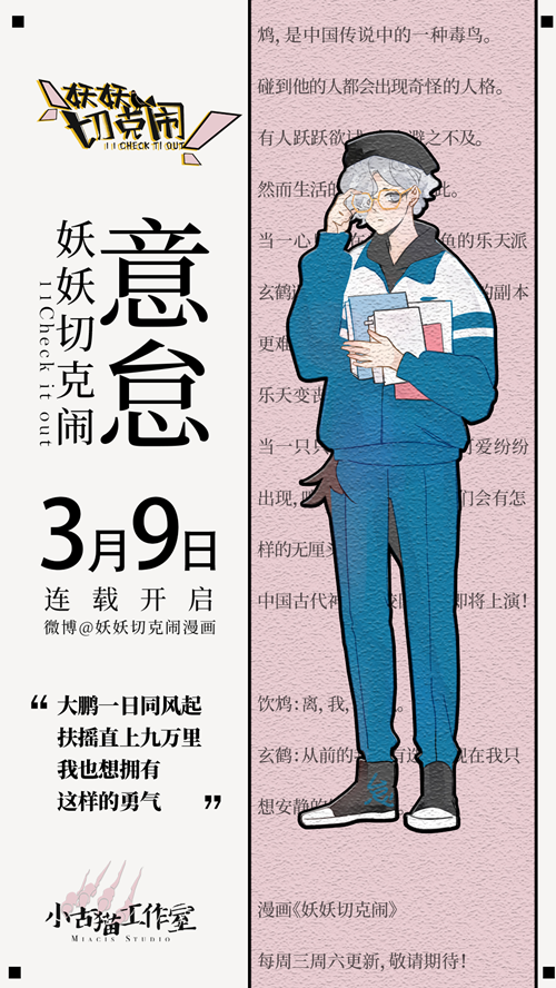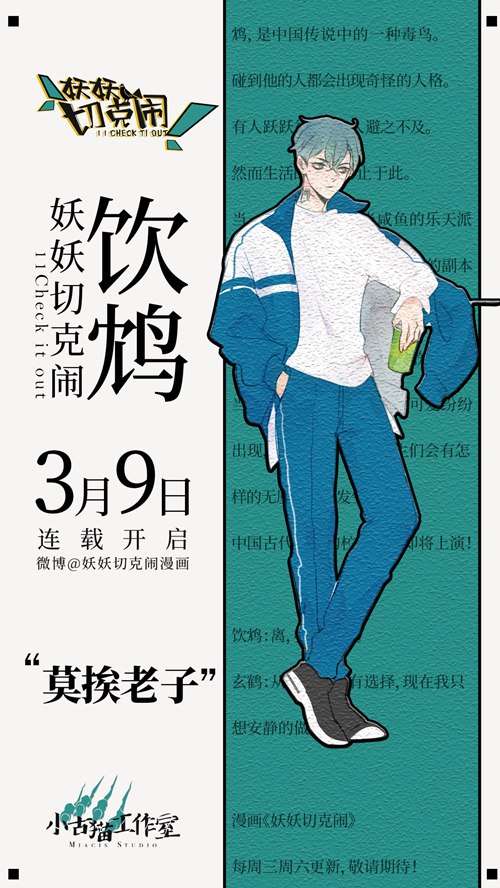 中国古代神鸟在人类现代生活的奇幻无厘头故事,漫画《妖妖切克闹》3月9日正式发布,作品连载微博@妖妖切克闹漫画 ,后续会发布于各漫画平台,每周三、周六更新。