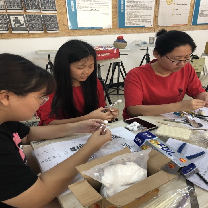 为激发学生的创新思维及团队协作能力,本次定格动画课程将同学们分为每5个小组。通过对定格动画基础知识学习、掌握模型制作技巧,加上对摄影技术 及后期软件的培训,最终呈现出5部精彩纷呈的定格动画作品。从故事构思到后期剪辑,同学们在短短一个月里,经不断调整、制作,把内心的小剧本以定格动画的形式展现出来,将粘土赋予灵魂和生命。