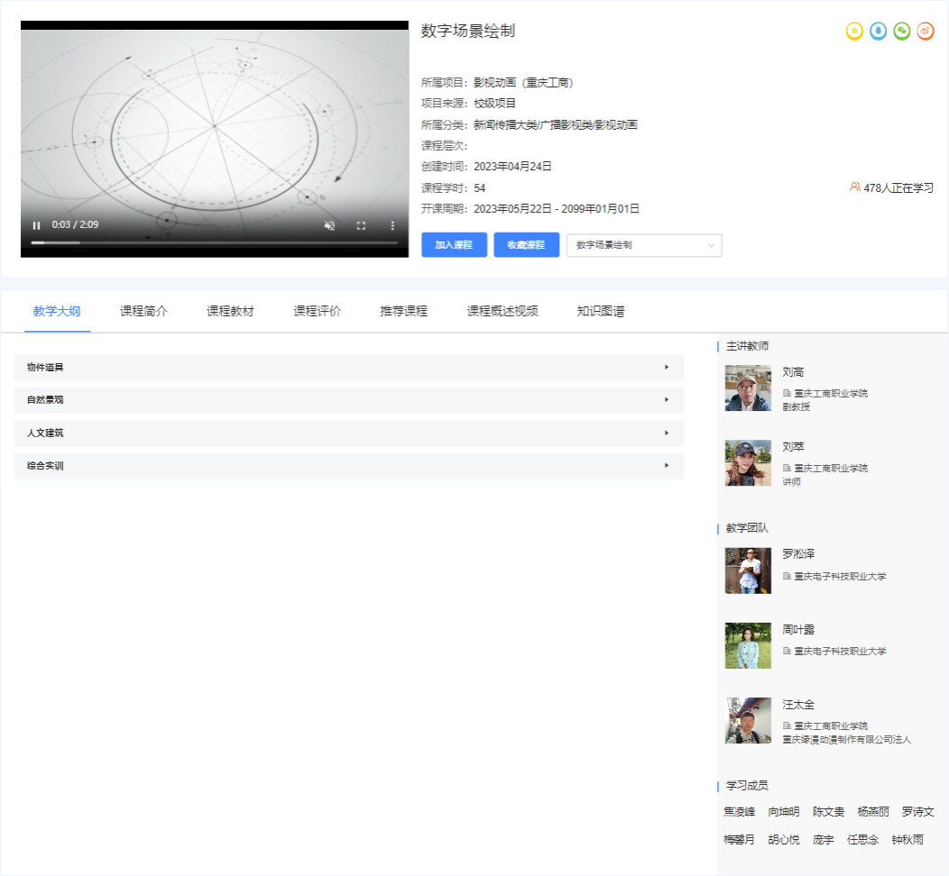 《数字场景绘制》精品资源共享课程的网络学习首页界面