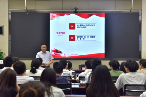 此次党课,周老师主要以“加入中国共产党是当代大学生的政治选择”及“既要争取一生一次,更要做到一生一世!”两个主题展开讲授,号召同学们引发思考、有所启迪、求得共鸣、见诸行动。授课中周老师强调,加入中国共产党是当代大学生的“双向”政治选择。首先,入党是个人严肃认真的自主选择;其次,入党必须自觉接受党组织的选择。入党不是随大流、搭便车,是理想信念与组织的高度切契合,同时接受党组织对个人的检验。