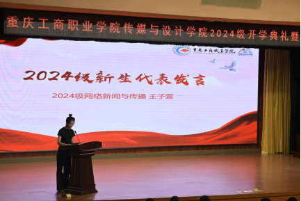 网络新闻与传播专业的王子萱同学代表全体2024级同学发言,她分享了在学校和学院的初体验,号召全体新生同学牢记“创新、育能、励志、修德”的校训,勤学苦练专业技能,争做技能报国的有志青年。