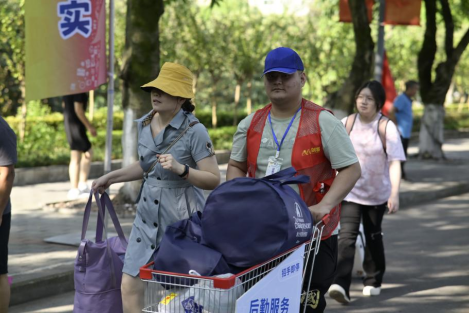 精心部署、安心入学有保障。为确保迎新工作顺利进行,学校及学院提前做了大量准备。学院设立统一接待点,统一布置迎新横幅、行李寄放处、防暑降温免费药品等常规迎新物品,同时传媒学院还设立新生签名墙,发放原创帆布袋等物品,做好迎新保障工作。此外,校园迎新通道两个站点均放置免费冰镇柠檬水和酸梅汤,为前来报到的新生及家长带来丝丝凉意。