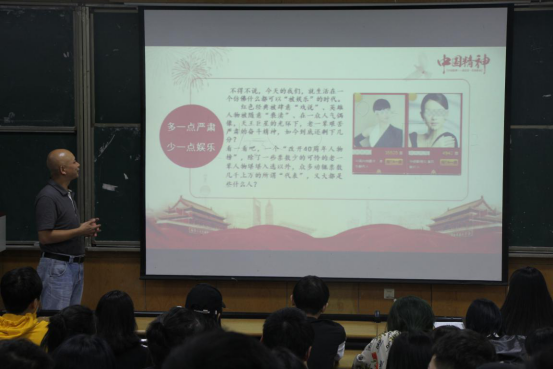 在课上,陈崇刚书记以“国家精神”为主题,从一个个鲜活的人物出发,从一件件发生在我们身边的事件说起,呼吁我们将中国精神安放心中,把中国精神付诸行动,把中国精神视为使命,这是历史赋予我们的责任;徐江院长用习主席在十九大报告中提出的“青年兴则国家性,青年强则国家强”为主题分别从国家、社会、人才培养角度讲述了社会主义核心价值观,并就大学生为什么要践行核心价值观、大学生如何践行社会主义核心价值观为学生进行了讲解,根据传媒艺术类专业学生的特点,要求学生“勤学、修德、明辨、笃实”,对职业生涯有一个清晰的规划。