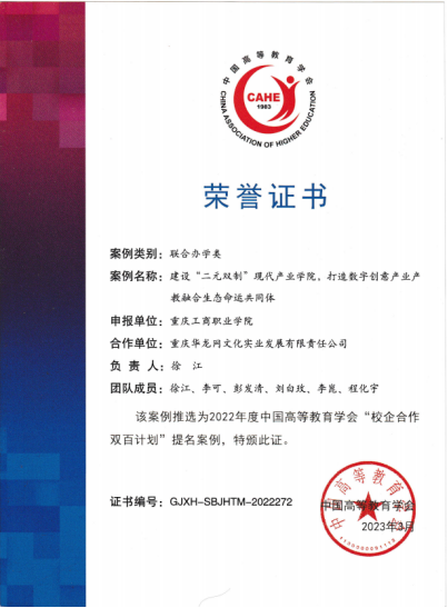 【供稿:李可】近日,中国高等教育学会公布了《2022年度“校企合作 双百计划”典型案例提名名单》,传媒与设计学院与重庆华龙网开展校企合作的典型案例“建设“二元双制”现代产业学院,打造数字创意产业产教融合生态命运共同体”入选本次提名名单,并在第58.59届中国高等教育博览会“双百论坛”作汇报,展示校企合作成果。