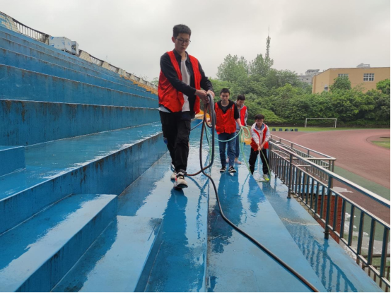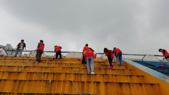 2021年4月19日,重庆工商职业学院传媒与设计学院社会实践部组织举办“爱我校园,从我做起”校园操场清扫活动。
