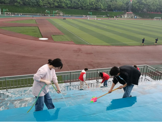在学院运动会来临之际,学校操场卫生是一个非常重要的问题,创造美好的环境,不仅有利于同学们比赛,更有利于校园环境的整洁。美化环境既是学校的事,更是同学们自己的事,爱护校园环境是同学们的责任与义务。