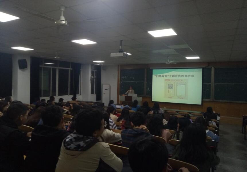 为全面贯彻落实上级扫黑除恶会议精神,进一步增强全体师生遵纪守法意识,切实保护大家的合法权益,确保校园和谐平安,并积极开展了“扫黑除恶”主题班会。在班会上,辅导员老师向学生们告知黑恶势力、违法犯罪给社会带来的危害,积极宣传打击黑恶势力和违法犯罪的重要性。并通过校园横幅、学生填写微信公众号信息等方式广泛宣传,使全校师生共同参与。同时,各班辅导员要求同学前往微信公众号参与扫黑除恶行动中,力争做到全民参与。该活动有利于增强学生远离黑恶、预防犯罪、遵纪守法的意识。为如何做一名知法、懂法、守法的合格学生打下了基础。