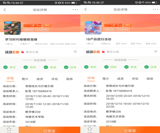 为纪念改革开放的沧桑岁月与辉煌成就,回顾改革开放 40 年来的伟大实践与理论创新,激励团员们继往开来,继续 前进,勇担新时代赋予青年的伟大使命。我所带领的八个班陆续开展“以青春的名义 向改革开放致敬”主题团日活动。引领广大青年 坚定不移跟着党的初心矢志不渝,坚定不移走中国特色社会 主义道路的信念坚如磐石,为实现中华民族复兴中国梦而奋斗的伟大理想岿然不动。以PU积分为活动发起载体,让活动上网,加强了对于活动的监督,促进了支部之间的互相学习。八个班结合自己实际情况,通过唱团歌、听时代故事、观看纪录片、微信公众号等内容学习。增强了同学们的爱国情怀和民族使命感。本学期另外开展了向“时代楷模”杨雪峰同志学习、背靠背满意度测评等5项团日活动,提升了班级成员的思想水平,加强了班级的凝聚力,促进了班级文化的建设。当代大学生祖国未来是祖国未来发展的中流砥柱,要学习并传承革命前辈们的优秀品质,增强了同学们的爱国情怀和民族使命感,真正展现新一代青年的精神面貌。