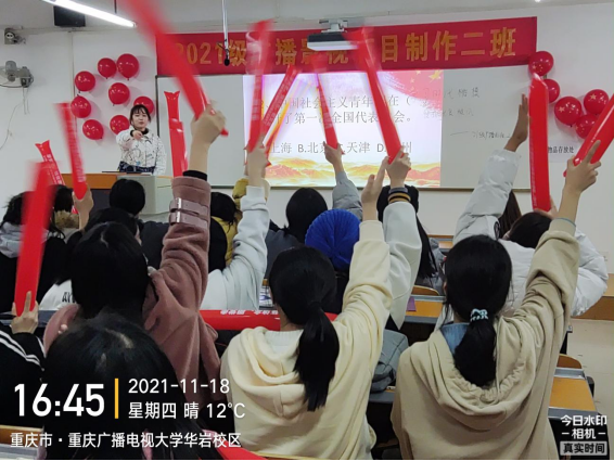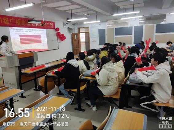 【供稿:李晨雯】为深入开展向“时代楷模”王红旭同志学习活动,发扬学校“勤奋忠诚朴实”的优良传统,在全校范围内掀起学习市委书记陈敏尔寄语全市青年的精神和学校第二次学代会精神高潮,引导广大青年在担当奋斗中绽放青春风采,努力成为堪当民族复兴重任的时代新人。为响应该号召,2021级广播影视节目制作2班团支部于2021年11月18日在教学楼205开展形式多样、内容丰富的“学习时代楷模,发扬优良校风”的主题团日活动,班级辅导员杨琪源老师参加本次团日活动。