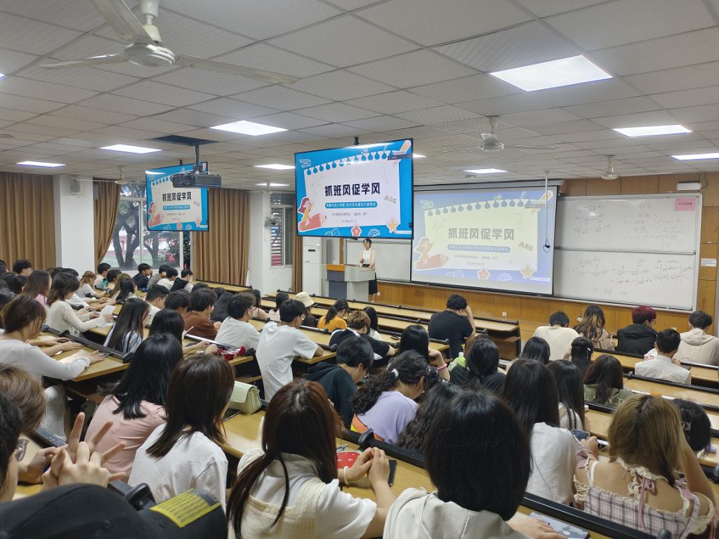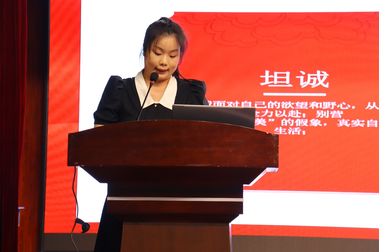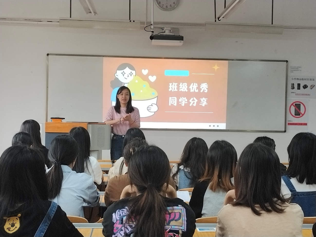 三位优秀学生代表分享完后,由传媒与设计学院团总支副书记杨琪源老师为本次活动进行总结。杨老师从学风建设的重要性和必要性两个方面讲解了为何要开展学风建设活动。传媒学子要深刻认识新时代赋予大家的历史使命,准确进行自我定位,明确学习奋斗目标,以饱满的热情投入到各门课程的学习当中去。