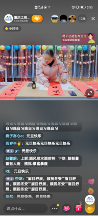 据悉,本次灯会活动内容形式丰富,整体节目设计安排了舞蹈、歌曲、书法展示等多种形式。在此次活动现场,一支支悠扬婉转的歌儿,让人心中不禁泛起了情丝乡愁;绚烂的灯光,给直播间增添了一分春日的暖意;一幅幅红色的春联,不仅寄托了对于新年的美好祝愿,更是彰显了当代大学生积极健康的立世处事观。值得一提的是,本次活动还设有抽奖、猜灯谜、你划我猜等多个互动项目,更是让本次活动的氛围变得愉悦轻松,处处传递出温暖。