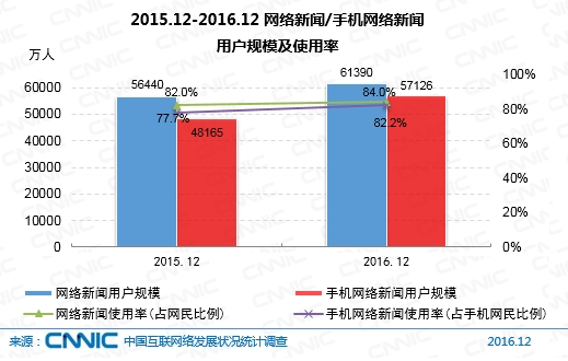 移动新闻客户端具有移动化、分众性、即时性、个性化、互动性、内容丰富化等特点,以个性代入的阅读体验、丰富聚合的内容形式、及时互动的传播优势为新闻的发展带来了全新模式。2017年1月,中国互联网络信息中心(CINNIC)发布第39次《2016年中国互联网络发展状况统计报告》,报告显示我国网络新闻用户规模为6.14亿,年增长率为8.8%,网民使用比例达到84.0%。其中,手机网络新闻用户规模达到5.71亿,占手机网民的82.2%,年增长率为18.6%。通过移动新闻客户端获取新闻资讯已经越来越成为首选工具,传统媒体开发的新闻客户端发展迅猛。