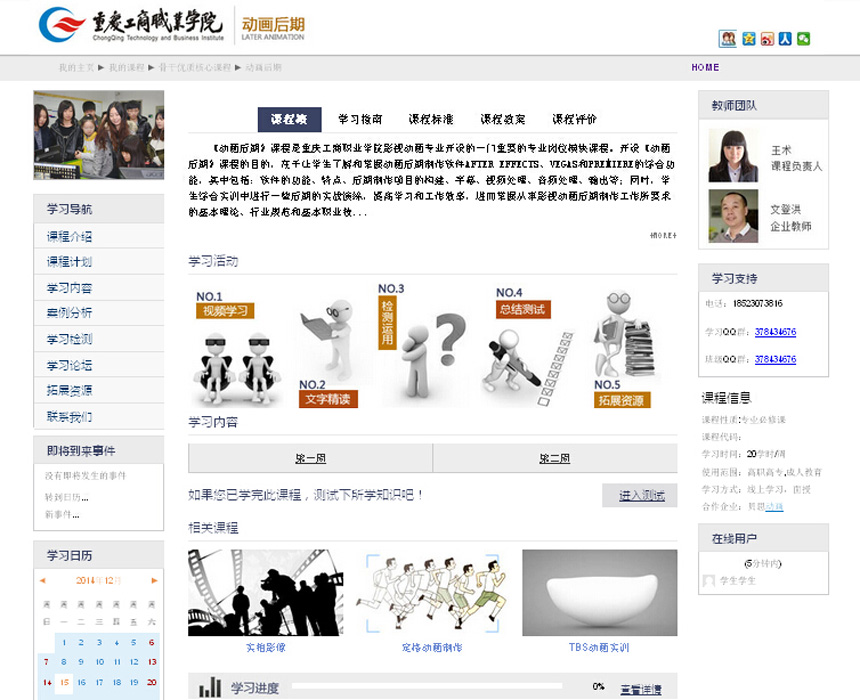 《动画后期》精品资源共享课程的网络学习首页界面