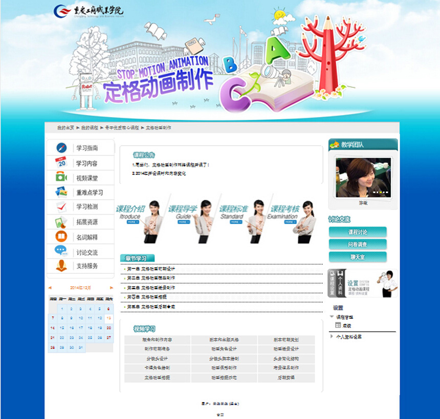 《定格动画制作》精品资源共享课程的网络学习首页界面