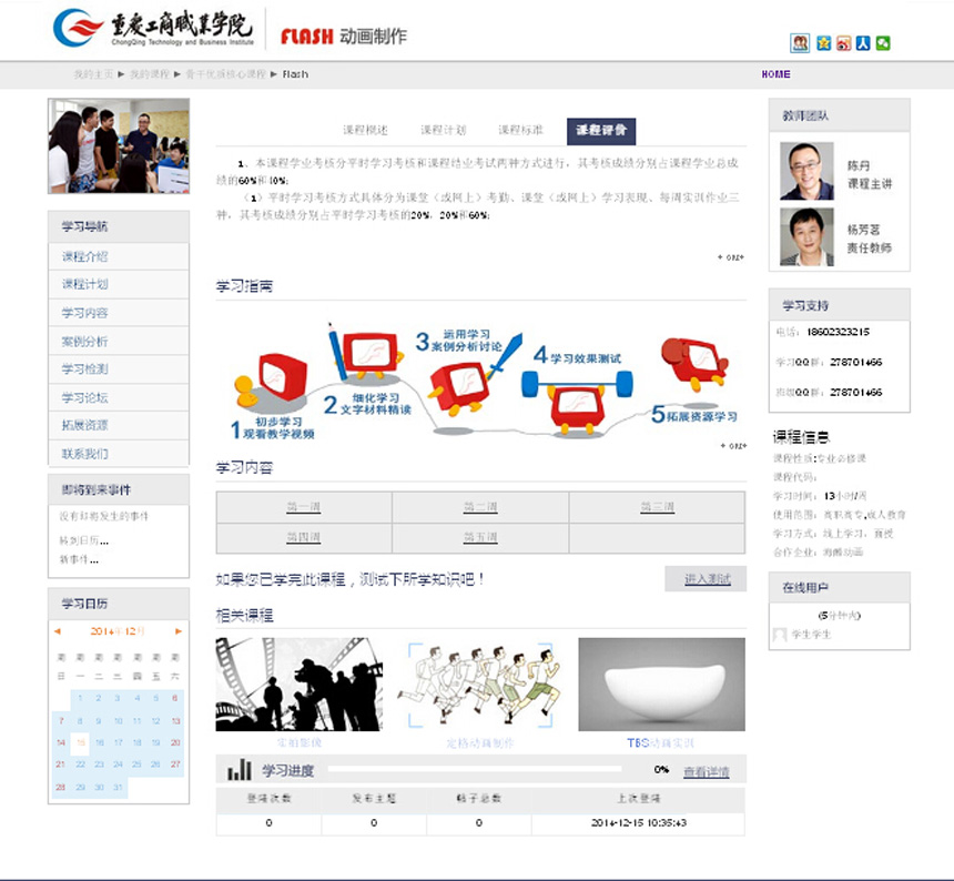 《Flash动画制作》精品资源共享课程的网络学习首页界面