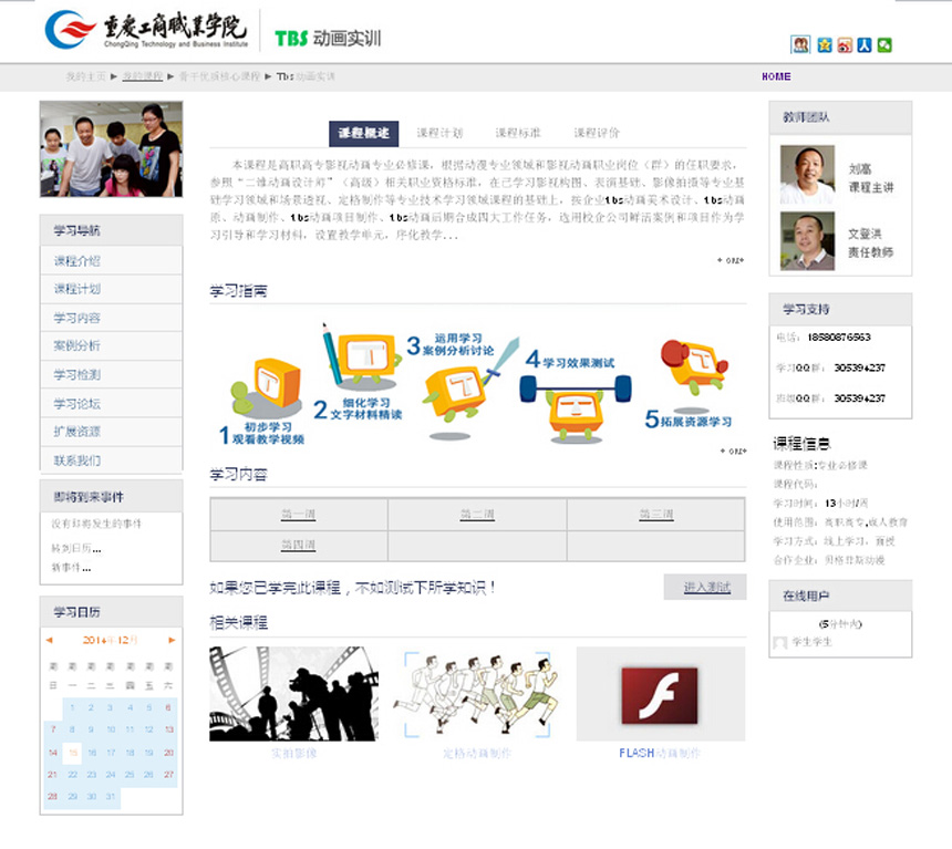 《TBS动画实训》精品资源共享课程的网络学习首页界面