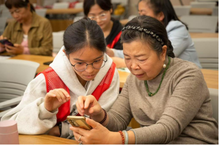 11月7日起,传媒与设计学院的师生志愿团队陆续走进沙坪坝区石井坡街道、丰文街道、陈家桥街道、联芳街道,累计服务社区居民115人次。活动现场,授课教师通过生动讲解与实操演示,让社区老人能够轻松掌握智能手机拍摄、图像处理及视频剪辑的基本知识和操作步骤,学生志愿者们提供耐心的解答与一对一指导,确保每位老人都能学有所获。