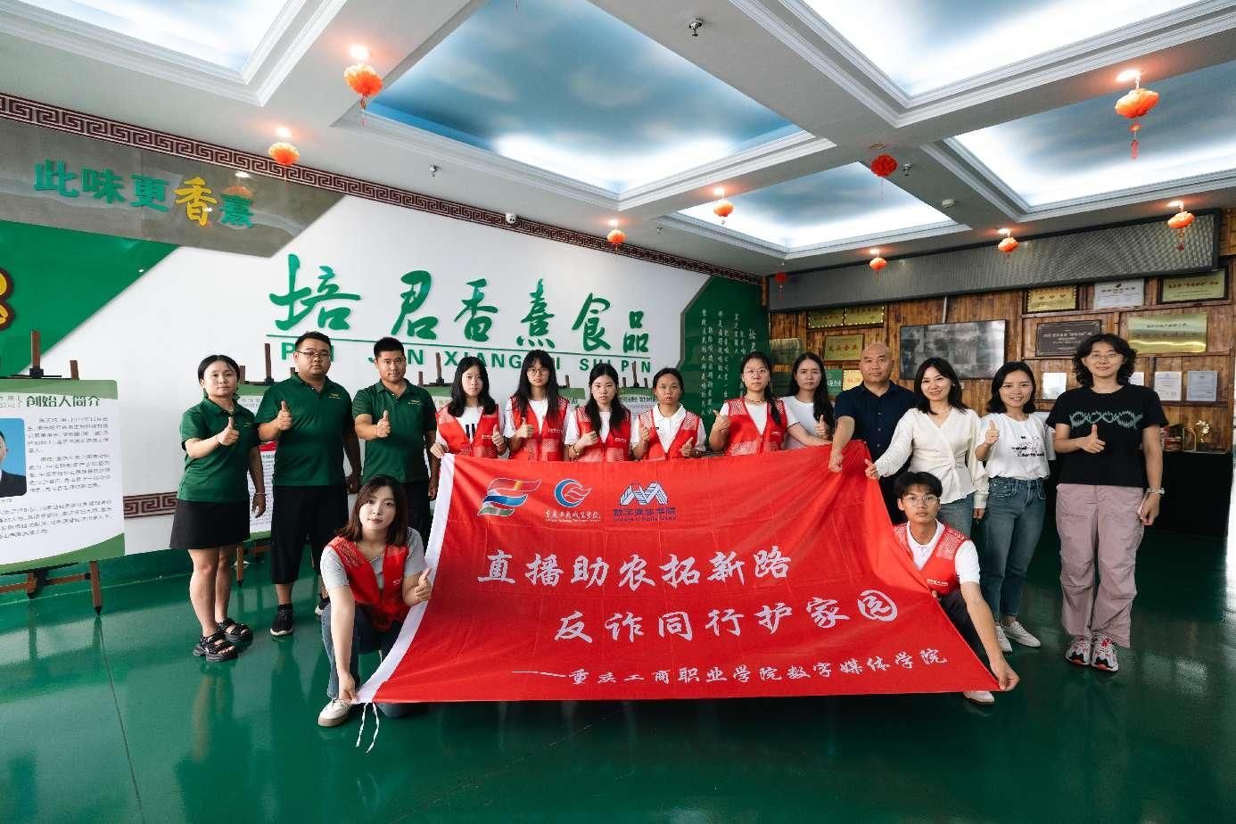 下午,实践团联合当地学员走进重庆培君香熹生物科技有限公司,聚焦 “啃壹腿” 羊腿等特色农产品开展电商直播实践。团队发挥专业优势,从直播间搭建、灯光调试到脚本策划、互动话术,向当地学员和企业员工系统演示直播全流程,并现场展示实操技巧。直播过程中,队员们通过产品亮点讲解、实时互动问答等方式,成功推动 “啃壹腿” 羊腿、特色豆腐乳等产品上线销售。此次活动不仅为特色农产品打通了线上渠道拓展思路,更将专业技能转化为赋能乡村的 “动力源”,让青春在服务乡村振兴的实践中践行 “技能报国” 的铮铮誓言。