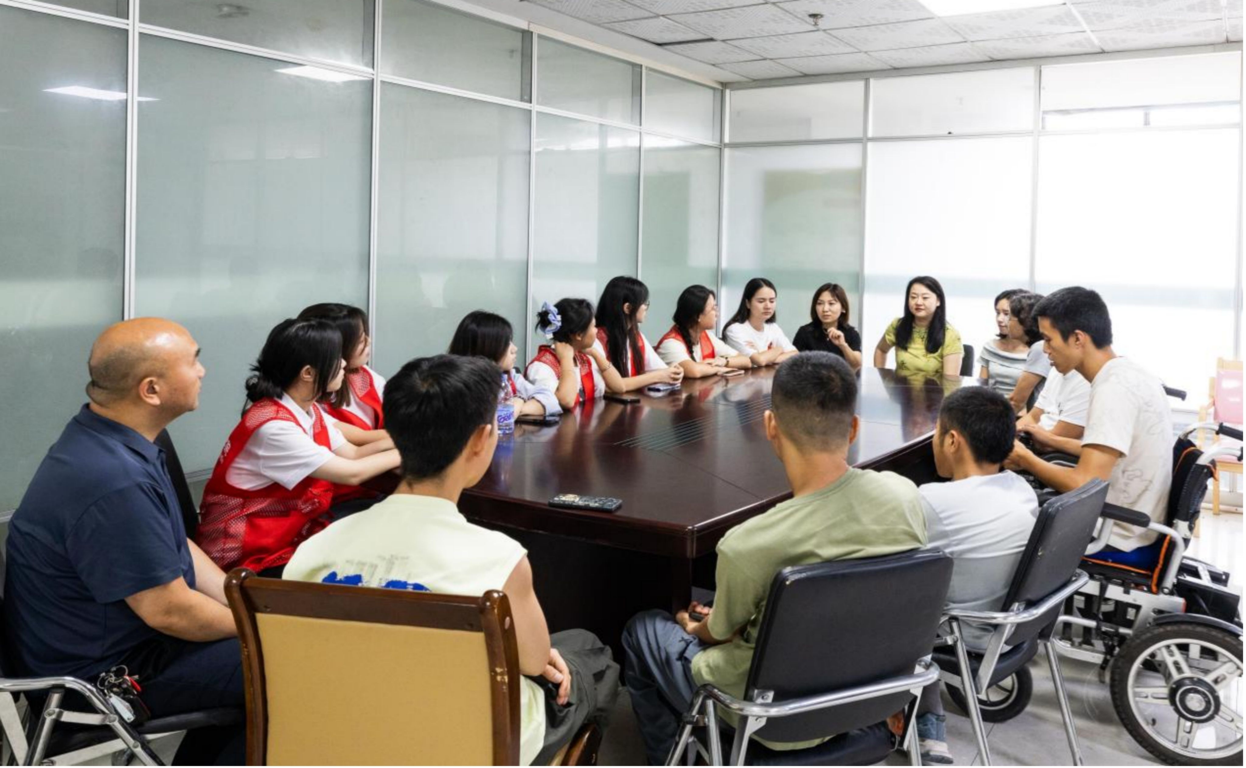 中午,实践团与兴顺和职业培训学校、秀山县残联成员座谈,聚焦残疾人电商直播痛点,针对 “操作复杂、文案生硬” 等问题,队员们现场演示AI文案创意、短视频剪辑技巧,提出“设计口语化带货文案” 等建议,并现场为残疾人主播的文案创作提供修改思路,用专业技能为特殊群体赋能,让科技服务更有温度。