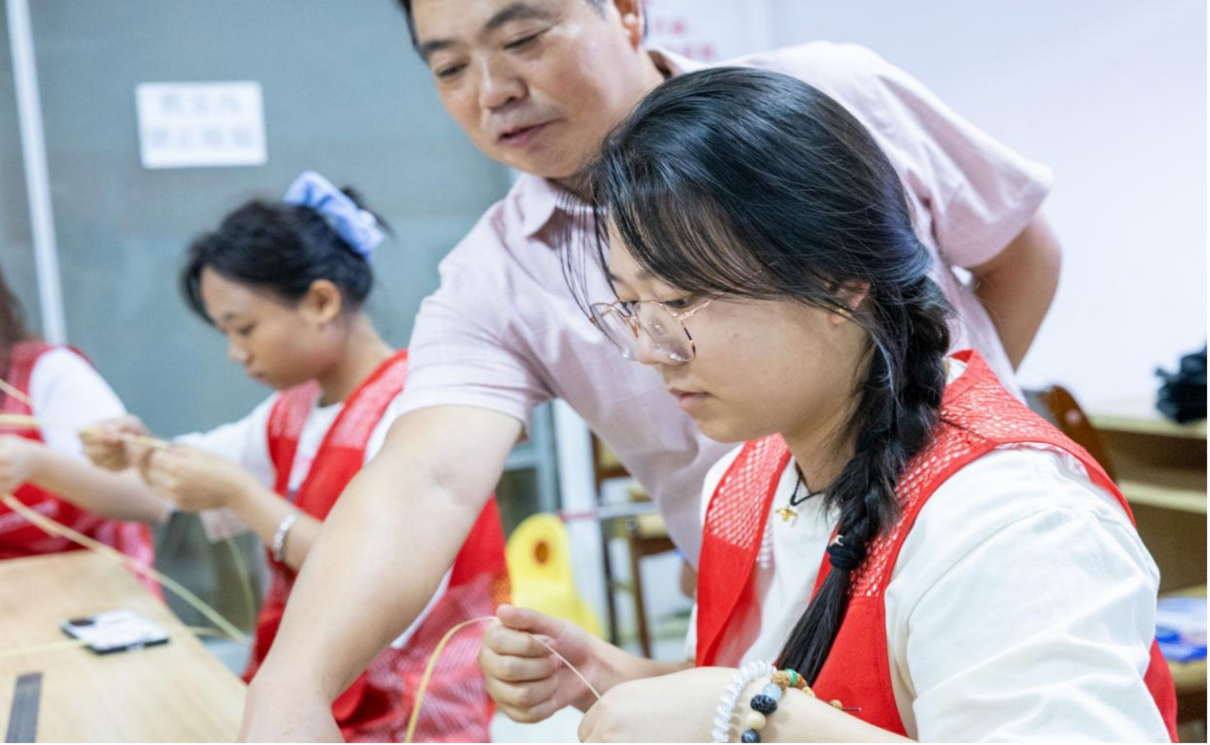 上午,实践团受邀参加县民族宗教事务委员会举办的 “非遗技艺竹编培训项目” 开班仪式。仪式后,队员们围在非遗竹编传承人身边,学习竹艺编织技艺,用镜头记录编织工序,讨论如何将传统元素融入数字文创设计,让古老技艺通过新媒体 “破圈”,为非遗传承注入数字活力。