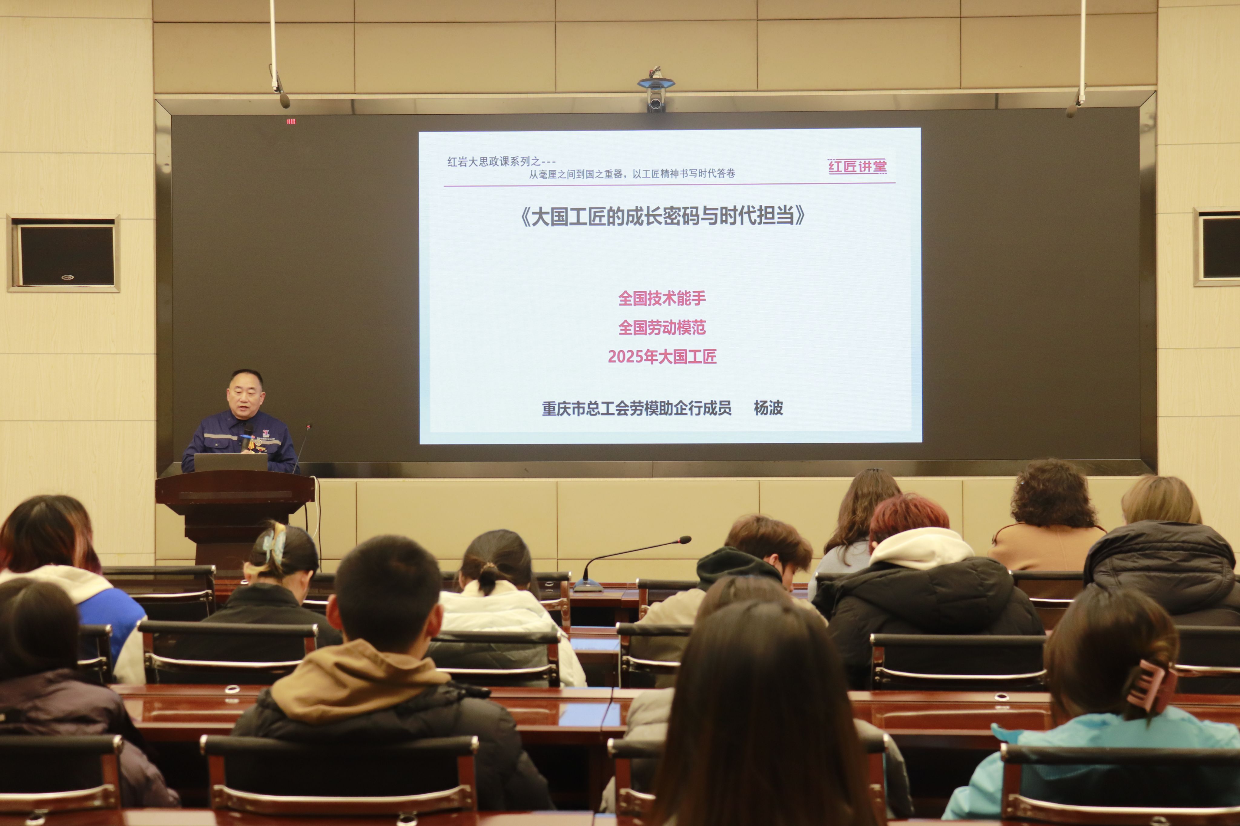 【供稿:张蒙】12月18日,全国劳动模范、大国工匠杨波应邀走进数字媒体学院党总支“红匠讲堂”,面向学院第二课堂实验班及部分师生代表共70余人,作《匠心筑梦:大国工匠的成长密码与时代担当》专题报告。