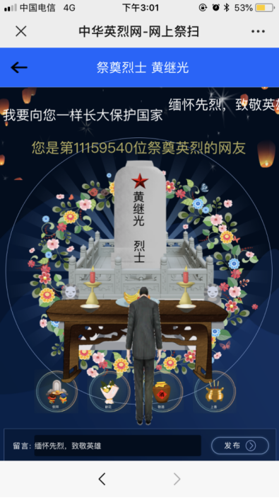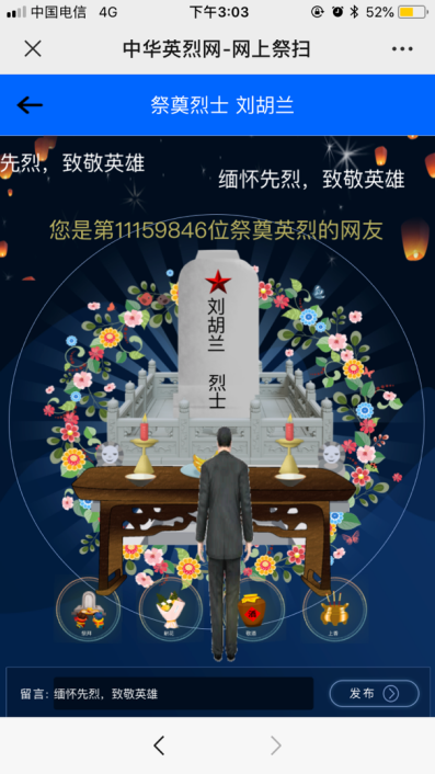 “天地英雄气,千秋尚凛然。”习近平总书记曾在多个场合缅怀英烈,讲述英雄事迹。他强调,我们要铭记一切为中华民族和中国人民做出贡献的英雄们,崇尚英雄,捍卫英雄,学习英雄,关爱英雄。清明之际,为感怀烈士为革命理想甘洒热血与青春的赤子之心,支部书记召集并组织支部的党员同志,积极行动,参加了本次网上祭扫活动。学工支部所有党员同志通过手机扫描“中华英烈网”或“退役军人事务部”公众号,或电脑打开对应门户网站,点击网上祭奠栏目或“烈士名录”,通过献花、留言、观看英烈事迹等方式祭扫。