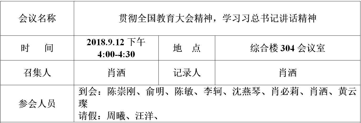 由宣传纪检委员肖洒,组织大家学习了全国教育大会习近平总书记重要讲话精神。