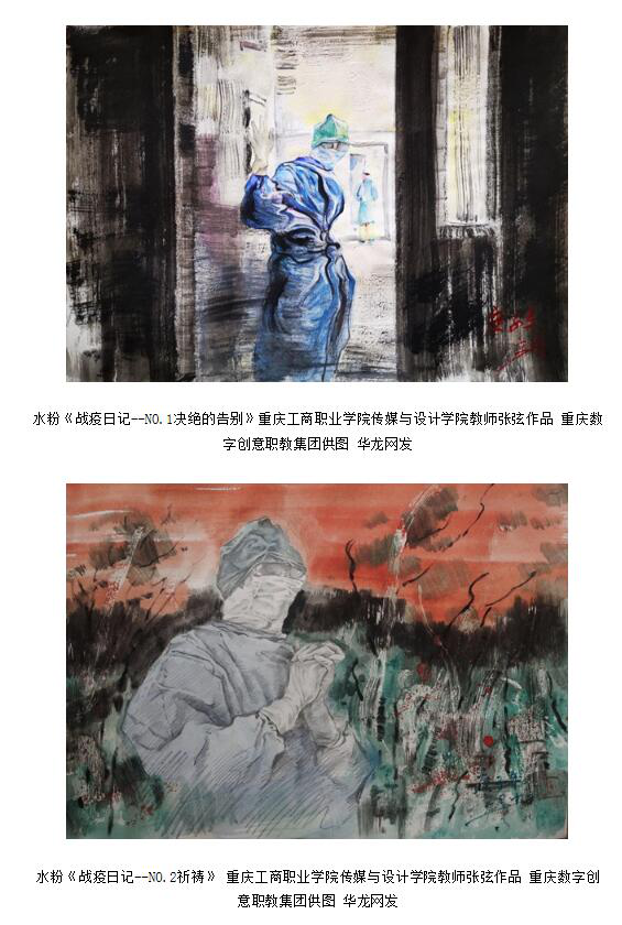 无数的白衣战士逆向而行,弛援武汉。身为艺术工作者的我们,虽然不能亲赴疫情最严重的地方支援,但也努力通过自身的力量来传达防疫抗疫的决心。传媒与设计学院的党员同志们,在学院总支的号召下,立足本职岗位,开展了以《防疫抗疫,‘艺’不容辞”》为主题的线上党日活动,总支陈春燕书记带头,陈敏、杨燕丽等党员、师生发挥专业优势,创作了大量针对防疫抗疫的宣传艺术作品,积极向学校宣传部投稿,并被采用;同志们还积极参加由重庆数字创意职业教育集团组织的防疫抗疫 “艺”不容辞——以防控抗击新型冠状病毒感染的肺炎疫情为主题的艺术作品征集活动。活动中支部书记们积极响应号召,把特殊时期的线上主题党日活动做得十分有意义:陈一颖、张弦、肖洒、王婧、王荧凤等党员、师生们以一幅幅绘画作品坚定地告诉大家:疫情之下,让我们并肩作战,这场战役必将取得最后的胜利。同志们用自己的艺术作品发挥社会服务功能,目前多件师生作品已陆续发布在华龙网平台。