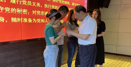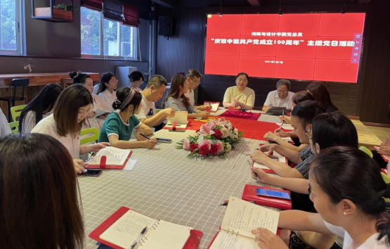 【撰稿人:张佳】2021年7月1日上午,传媒与设计学院党总支应学校要求组织全体党员集中收看了庆祝中国共产党成立100周年大会的直播。直播观看活动结束后,党总支组织大家在众创空间路演区进行了主题党日活动,本次活动由党总支书记陈春燕同志主持。首先,陈春燕同志带领全体党员重温了入党誓词;接着,退休领导潘校长向王丹丹等四位预备党员赠予党徽;最后,全体党员同志交流发言,针对上午习近平总书记的发言中印象深刻的一句话发表感想。
