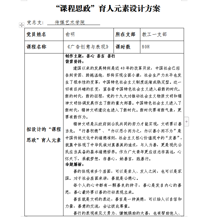 俞明-《广告创意与表现》-“课程思政”育人元素设计方案