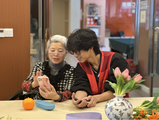 与此同时我们也看到了志愿者们忙碌的身影,他们不仅维护了现场秩序,更是耐心的为老人们答疑解惑,看到老人们慢慢学会了使用手机相机,记录自己记录生活,志愿者们脸上也露出了笑容。