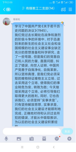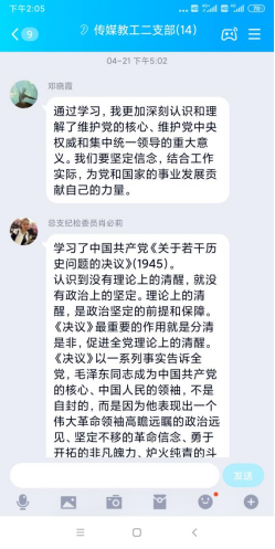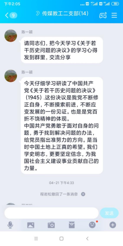 大家相互交流了学习心得,会后把学习心得发布到了群里。