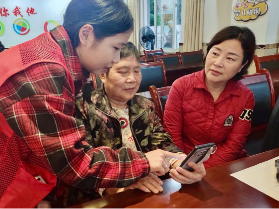 活动现场,师生志愿者们充分发扬志愿服务精神,张蒙老师主讲课程《乐享安全网络生活——手机短视频制作与管理》,为社区老人讲解如何使用手机拍摄抖音短视频以及短视频软件防诈骗提醒。学生志愿者们热情地为社区的老人们演示智能手机的操作方式,教授老年人如何使用手机拍摄短视频,如何进行剪辑、添加音乐等基本操作,讲解如何上传、分享、删除短视频,以及如何设置隐私权限等,志愿服务活动进行得井然有序,深受欢迎。