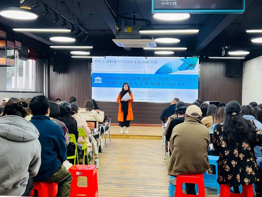 【供稿:邓琬珺】3月11日下午,一场主题为“‘意’起向未来”的中国国际大学生创新大赛国赛获奖项目分析、大学生双创大赛政策解读暨初创企业财税规范与运营管理实务讲座,在重庆工商职业学院创意九龙众创成功举办。本次活动旨在通过拆解国赛获奖项目核心逻辑,解读最新赛事政策,为大学生打通“赛事参与—项目孵化—政策对接”的全链条路径。