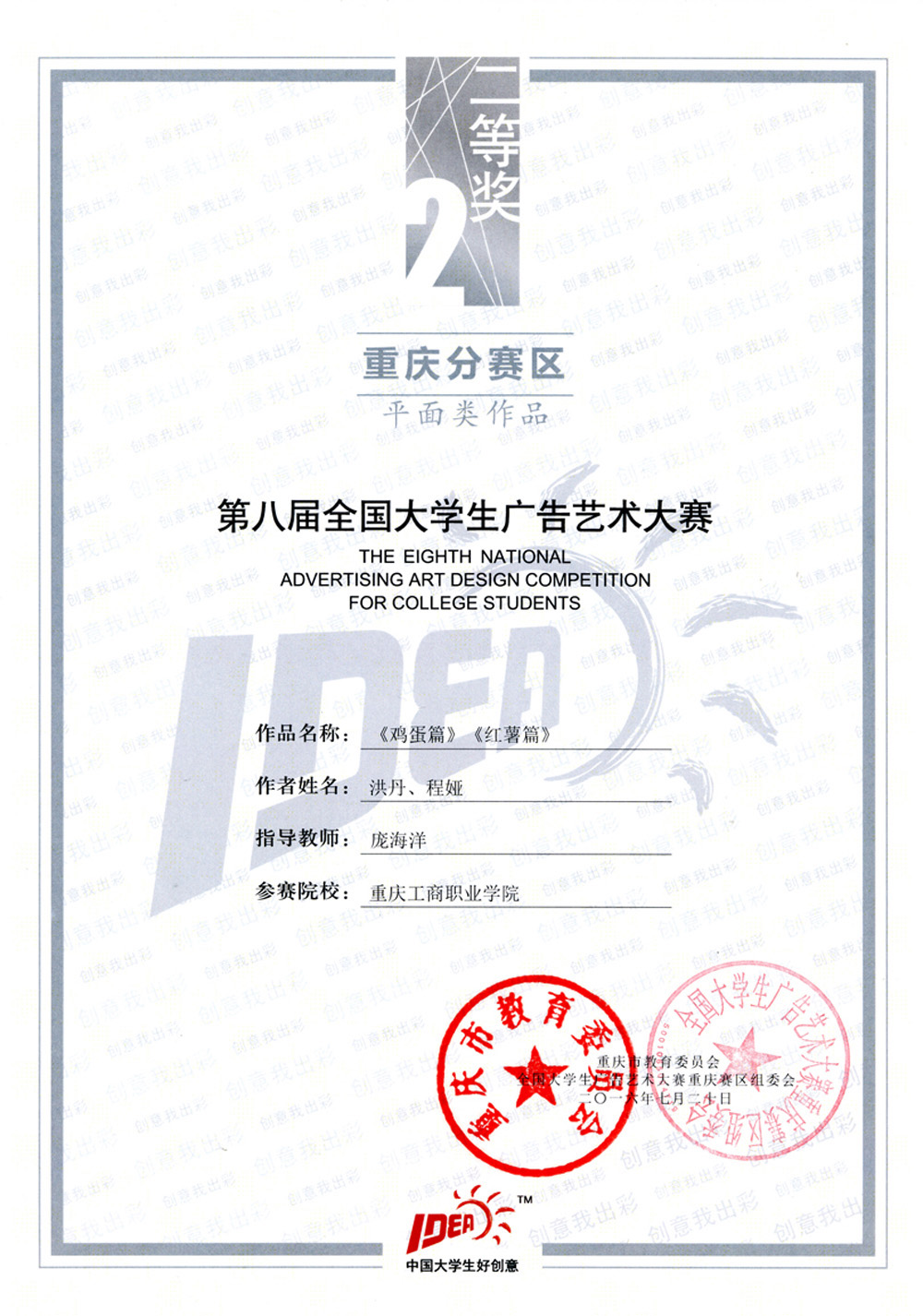 第八届全国大学生广告艺术大赛重庆分赛区平面类作品二等奖