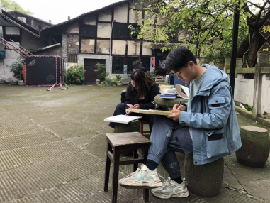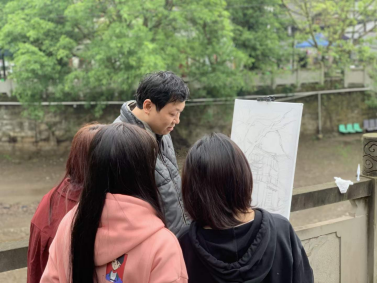 在偏岩古镇,教师指导学生进行美丽乡村的艺术创作,用镜头和笔端记录乡村美景,展现社会主义新农村的建设成果,创作出一幅幅优秀的作品。