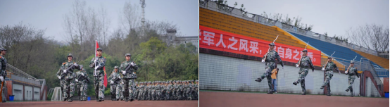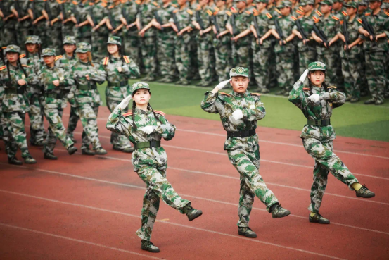 向前 !向前! 向前!主席台前队列俨然,他们眼神坚定地向前走去,向未来走去。他们如同战士手持战斗枪,坚定的眼神、敏捷的动作诠释着00后的果敢。