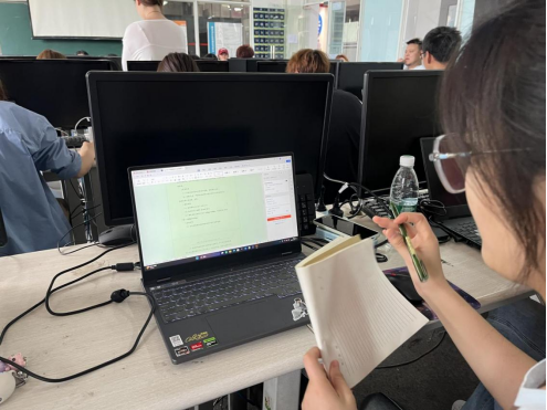 在现场四人为一个小组,每个小组分工明确,各司其职。比赛中每位同学都认真对待,积极完成任务,分析小组任务的完成流程。发挥团队合作的能力认真完成比赛。